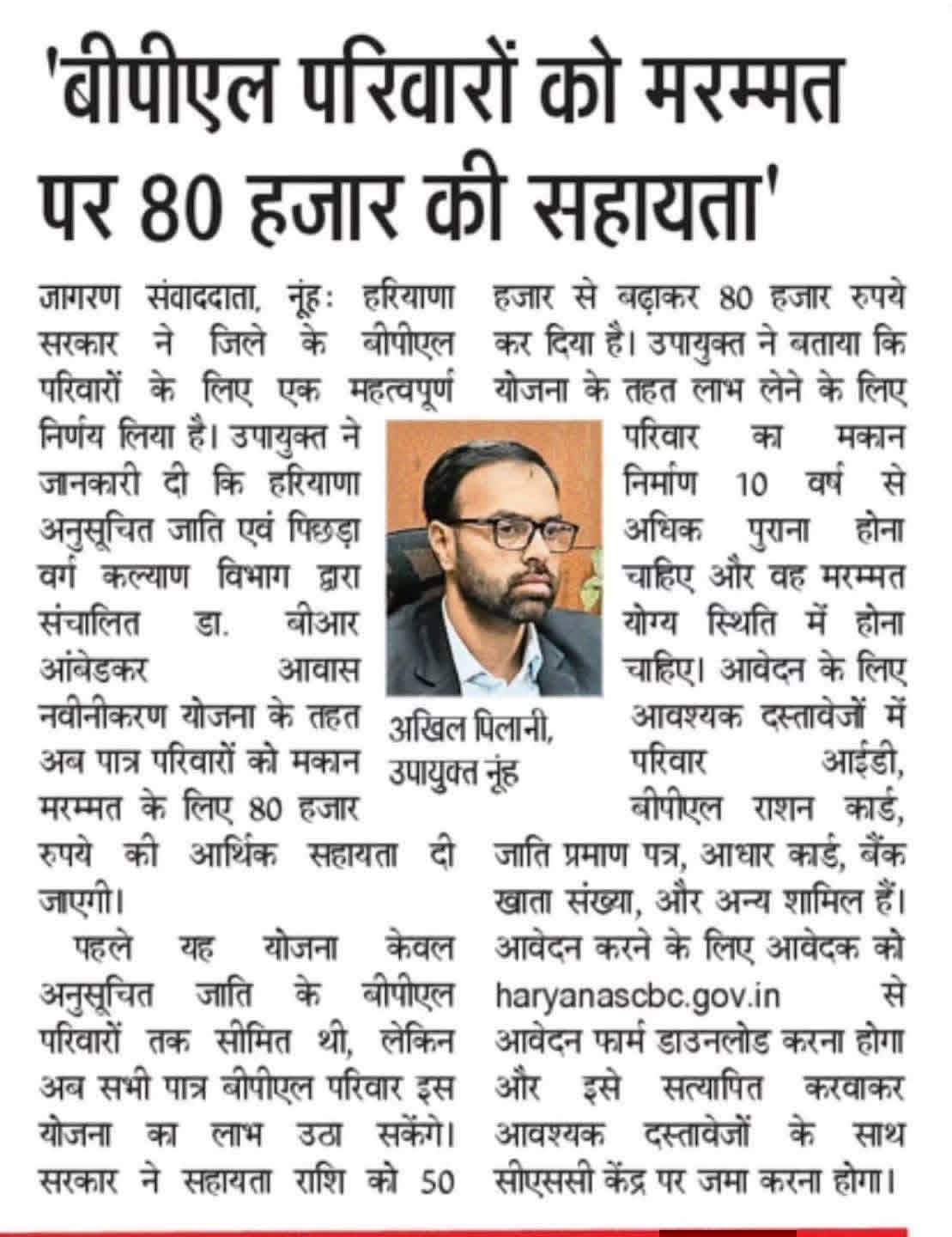 डॉ. बीआर अंबेडकर आवास नवीनकरण योजना, हरियाणा सरकार बीपीएल योजना 2026-27, बीपीएल परिवारों के लिए योजनाएं, bpl card loan haryana, bpl card benefits in haryana, मकान की मरम्मत के लिए योजना Haryana, bpl card loan scheme in haryana, Haryana Ration Card benefits Online Apply, Haryana BPL Ration Card benefits 2026, Haryana Ration Card benefits, makan repairing yojana form pdf, dr ambedkar awas navinikaran yojana form pdf, मकान मरम्मत योजना form pdf 2026, मकान मरम्मत योजना Last Date, मकान मरम्मत योजना Form PDF, मकान मरम्मत योजना Documents, मकान मरम्मत योजना Online Apply, dr. b.r ambedkar awas navinikaran yojana application form, अंबेडकर आवास योजना, बीपीएल मकान योजना, 80000 रूपये हर BPL कार्ड वाले परिवार को मिलेंगे, राशन कार्ड
